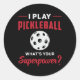 Sticker Rond Je joue à Pickleball Quel est votre superpuissance