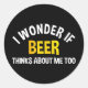 Sticker Rond Je Me Demande Si Beer Pense À Moi Aussi