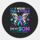 Sticker Rond Je Porte Turquoise & Violet Pour Mon Fils