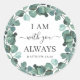 Ce design botanique rustique présente une couronne d'eucalyptus à l'aquarelle avec le verset bible "Voici, je suis toujours avec vous." Matthew 28:20 Le texte est personnalisable.