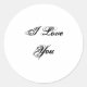 Sticker Rond Je T'Aime. Dans une police de script. Noir et Bla