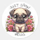 Sticker Rond Je Vous Dis Bonjour ! Chien chiot mignon Carlin