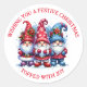 Jolie aquarelle fantaisie gnomes d'hiver en rouge et bleu autocollants de Noël. Souhaitez-vous un Noël festif surmonté de joie !