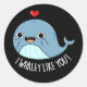 Sticker Rond Je Whaley Aime Vous Drôle Baleine Pun Dark BG