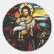 Vitraux vintages représentant le Christ comme berger avec ses agneaux.