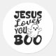 Sticker Rond Jesus Loves You Boo Christian Halloween Ghost Funn
