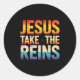 Sticker Rond Jesus Take The Reins - Insrational Christian Surre