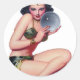 Image vintage broche d'un âge classique. Une photo amusante et spartiate d'une pose de pinup rétro. Une femme pose avec sa boule de cristal.