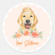Sticker Rond Joli Golden Retriever et Fleurs de Pêche Anniversa