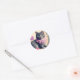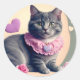 Cet adorable autocollant présente un chat moelleux avec un collier rose, régulièrement posé à côté d'un amas de roses.