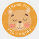 Un joli autocollant de lion "Merci pour venir" pour enfants garçon fête d'anniversaire ou baby shower dans zoo ou thème safari.