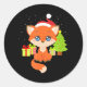 Sticker Rond Joli Noël Fox Santa Hat sapin de Noël n