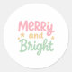 stickers de Noël moderne avec un design mignon et amusant avec "Joyeux et brillant" dans joyeux rose pastel et vert décontracté lettrage.