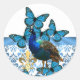 Sticker Rond Joli paon et papillons bleus