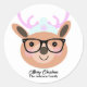Sticker Rond Joli Reindeer Noël Casquette Écharpe lunettes