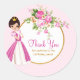 Sticker Rond Jolie Brunette Princesse Merci d'anniversaire