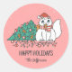 Sticker Rond Jolie Chat Noël Arbre Neige Vacances d'hiver