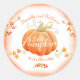 Baby shower Unisex petit citrouille mignon aquarelle art étiquette personnalisé. Idéal pour une grossesse automnale, un baby shower et des célébrations de faire-part de naissance. Jolie aquarelle petit art citrouille orange avec baies feuilles de vigne et un arrière - plan de lavage aquarelle. Personnalisez avec vos propres détails de douche pour bébé. Idéal pour offrir des cadeaux ou sceller vos enveloppes d'invitation L'aquarelle originale et le design par Sarah Trett pour www.mylittleeden.com