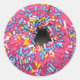 Une photo d'un 🍩 avec un glaçage rose délicieux et des arrosages.