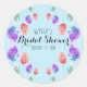Chérissez la joie des futures noces avec notre autocollant de fête prénuptiale sur le thème bohème ! Le design présente une représentation artistique de trois figures de feuilles sur un fond bleu clair parsemé de petites taches de forme irrégulière. Chaque figure est constituée d'une fine tige sombre et d'un feuillage coloré de style aquarelle. Le feuillage de gauche est violet et bleu ; celui du milieu est vert et sarcelle ; celui de droite est orange et rouge. Les couleurs de chaque feuillage sont mélangées de manière fluide, créant un effet de dégradé doux. Les détails du texte sont présentés de manière magnifique au centre avec une typographie élégante. Idéal pour ajouter une touche personnelle à vos invitations, faveurs ou décorations de fête prénuptiale.