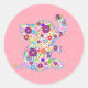 Sticker Rond Jolie Fleurs Rétro Style Cartoon Eléphant