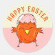 Chick de Pâques mignon avec Stickers de dessin en coquille d'oeuf. Cet adorable autocollant de Pâques présente une mignonne poussette orange portant une coquille d'oeuf sur la tête, dressée contre un arrière - plan jaune et rose doux. C'est la meilleure façon d'ajouter un peu de gaieté festive à vos cartes, artisanat et décorations de Pâques !
