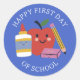 Sticker Rond Jolie Première Journée d'École Heureuse