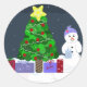 Une scène mignonne avec un sapin de Noël décoré un petit bonhomme de neige et de jolis cadeaux sous l'arbre.