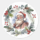Sticker Rond Jolly Souriant Père Noël Aquarelle couronne de Noë