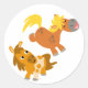 Sticker Rond Jouer Ponies caricaturales en jeu