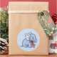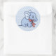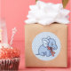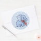 Un mignon éléphant bleu avec un ruban rouge autour du cou.