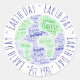 Des mots décrivant la beauté et l'émerveillement du monde naturel et des mots relatifs à l'entretien de la terre forment ce design terrestre. Les mots "Jour des terres" se répètent autour du design central ainsi que "Est. 1970." Le jour des terres a eu lieu pour la première fois en 1970 et a continué chaque année le 22 avril comme une démonstration de protection de l'environnement et de célébration de notre planète.