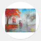 Sticker Rond Jour pluvieux automne rouge bus peinture parapluie