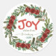 Sticker Rond Joy Handwritten Script Name Red Christmas Wreath