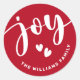 Les autocollants de Noël avec le mot "joie" dans un élégant script blanc sur un arrière - plan rouge avec deux coeurs et votre nom ci-dessous. Toutes les couleurs sont personnalisables dans l'outil de conception.