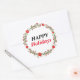 Sticker Rond Joyeuse couronne de fêtes avec fleurs Noël