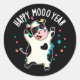 Sticker Rond Joyeuse Moo Année Funny Cow Pun Dark BG