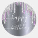 Sticker Rond Joyeuse parties scintillant d'anniversaire argent
