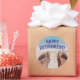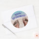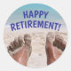 Autocollant joyeuse retraite drôle avec photo de pieds sablonneux sur la plage est idéal pour une fête de retraite ou un album photo.