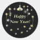 Sticker Rond Joyeuses étoiles et cloches du Nouvel An en noir