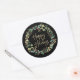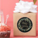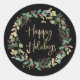Sticker Rond Joyeuses fêtes | Black and Modern Faux Gold Wreath