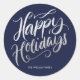 Sticker Rond Joyeuses Fêtes Calligraphiques Papier D'argent Per