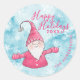 Sticker Rond Joyeuses fêtes Elégant bleu rose Gnome Noël