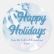 Ce bel autocollant de fête d'hiver présente de jolis flocons blancs à côté de Happy Holidays écrits en cursive élégante au-dessus de votre nom d'entreprise. Customisez ce magnifique décor de Noël d'entreprise.