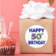 Joyeux 50e anniversaire en police de ballons - Design d'anniversaire pour un 50e anniversaire spécial. Idéal pour n'importe quel 50 ans ! Oh - Soyons les premiers à dire "Joyeux anniversaire" ! Customisez ce design en ajoutant un nom ou même déplacer l'image autour !