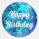 Sticker Rond joyeux anniversaire 3d bleu disco balle