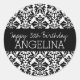 Sticker Rond Joyeux anniversaire avec un damas noir et blanc te
