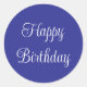 Sticker Rond Joyeux Anniversaire Bleu et Blanc Élégant Script