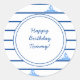 Sticker Rond Joyeux anniversaire Blue Sail Boat et Stripes