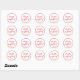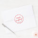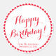 Joyeux Anniversaire rouge nom de script personnalisé favorise Stickers Rond Classique. noms et date entourée d'une délicate couronne ronde de coeurs mignons. en rouge et blanc